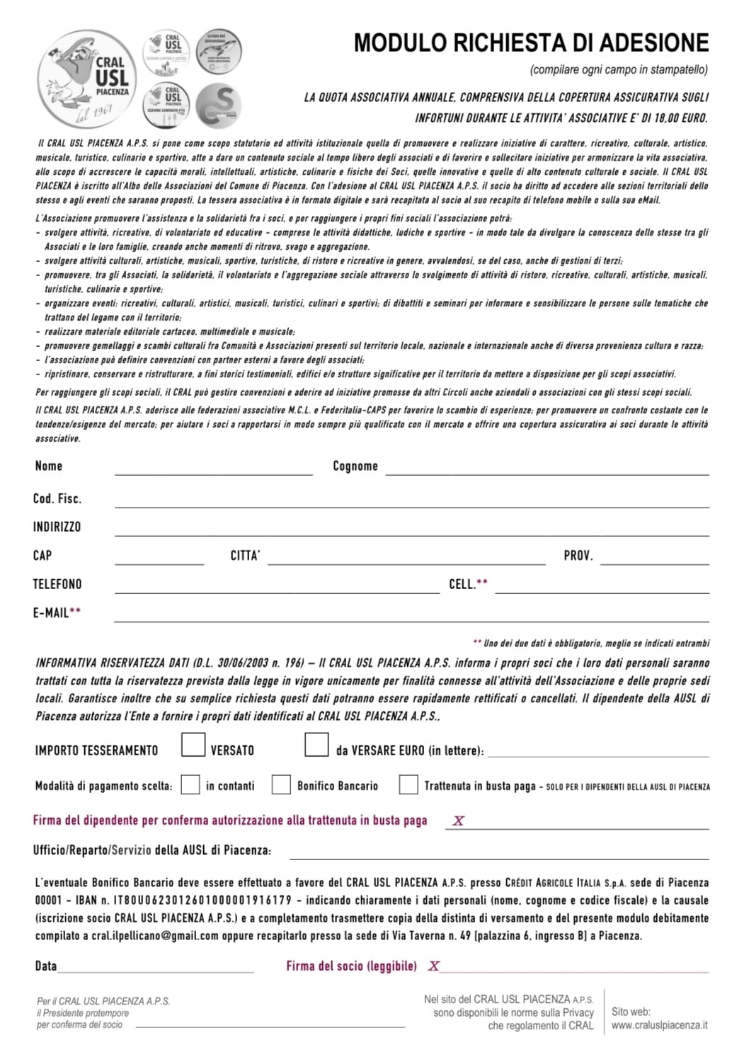 Il regolamento è pubblicato sul sito www.craluslpiacenza.it