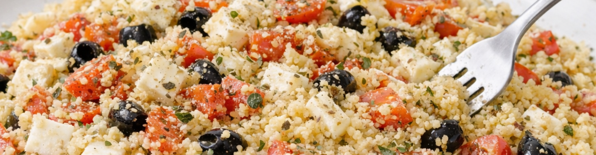- Portare ad ebollizione un bicchiere di acqua e aggiungere un pizzico di sale. Spegnere il fornello ed incorporare il cous cous e lasciar riposare per 5 minuti.